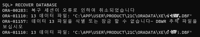 ORA-00283: 복구 세션이 오류로 인하여 취소되었습니다