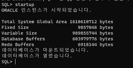ORACLE 인스턴스가 시작되었습니다.